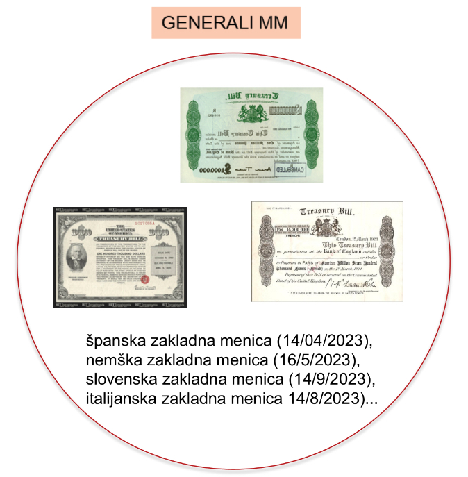 Kot prikazano na primeru sklada Generali MM, si lahko sklade denarnega trga predstavljamo kot skupek naložb v nizko tvegane kratkoročne vrednostne papirje.