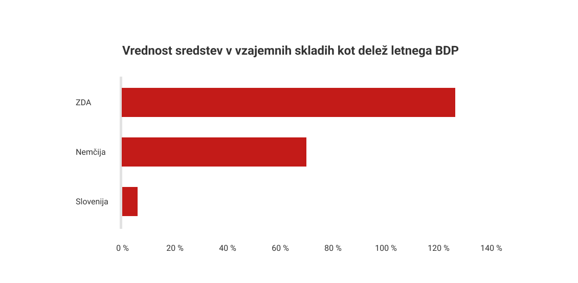 Kljub statističnim podatkom, ki pričajo o tem, da je razpršeno investiranje na kapitalske trge ob pravilnem pristopu in ob danem tveganju donosno, ostajamo Slovenci zelo zadržani do te oblike plemenitenja premoženja. Delež naložb Slovencev v vzajemnih skladih znaša zgolj dobrih 5 % letnega bruto domačega proizvoda. Za primerjavo, v Nemčiji je ta številka 70 %, v ZDA pa vrednost sredstev v vzajemnih skladih celo presega letni BDP (statista, 2023). Močno zaostajamo tudi po količini sredstev, ki jih investiramo neposredno na kapitalskih trgih z direktnim vlaganjem v vrednostne papirje.