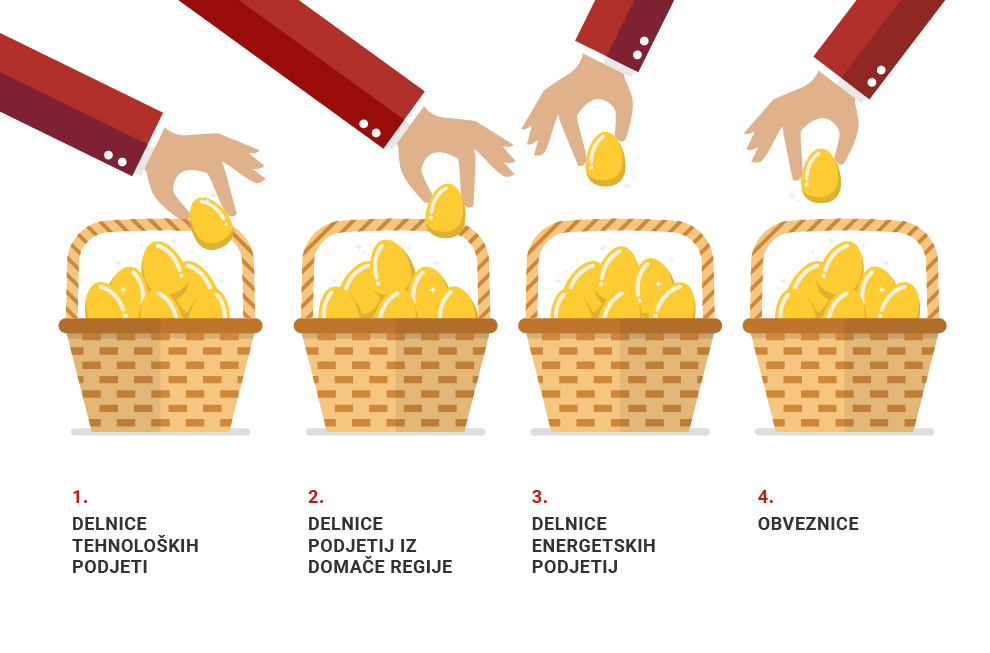 Slika 3: z razpršitvijo svojih naložb zmanjšamo tveganje celotnega portfelja