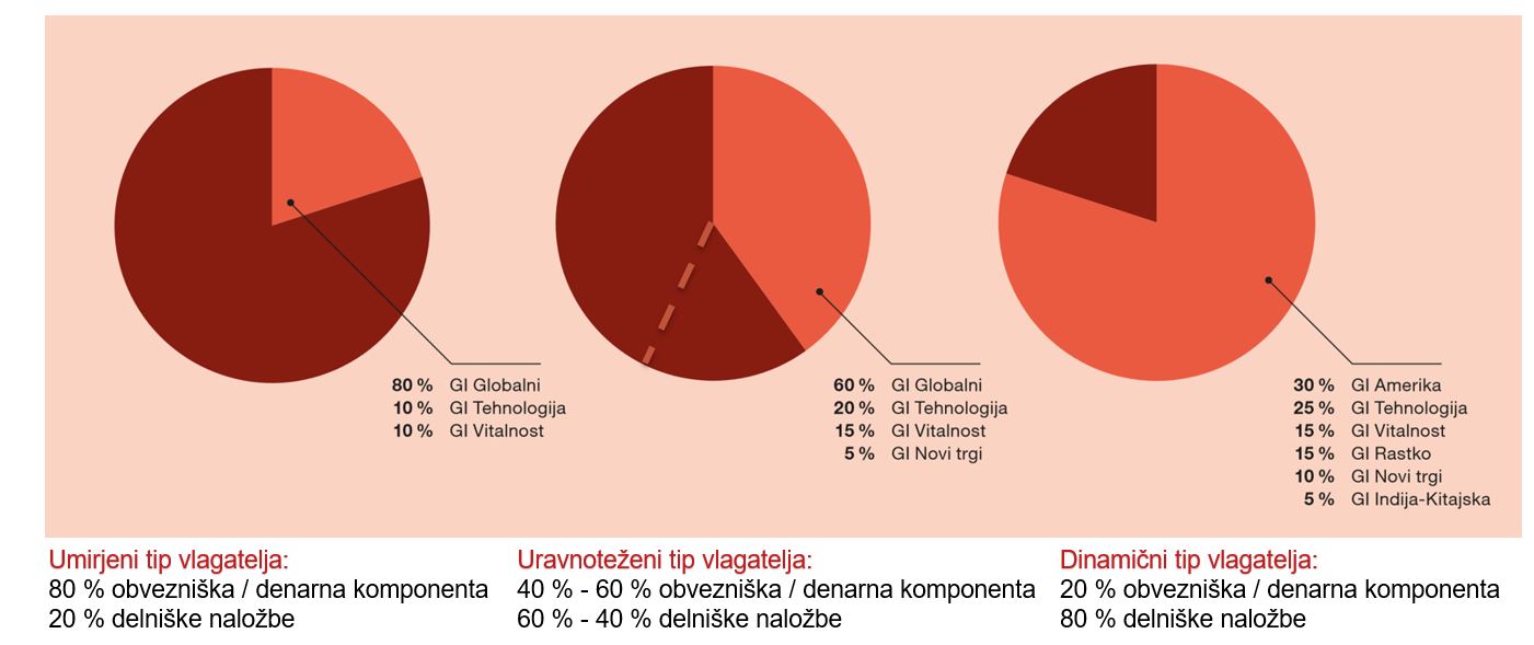 Globalno razpršene delniške naložbe s kombinacijo obvezniških naložb ostajajo najbolj privlačna izbira, saj delniške naložbe ponujajo delno zaščito pred inflacijo, obvezniške naloge pa zmanjšujejo tveganje v portfelju. Poudarek je na razvitih trgih, predvsem ZDA. Za dolgoročnejše vlagatelje tehnološke delnice ostajajo zanimiva izbira, saj ponujajo rast poslovanja ter zasledovanje prihodnjih trendov. Pozornost je trenutno usmerjena na Generali Surovine in energija, kjer delnice družb iz panoge počasneje sledijo rasti samih surovin, tako da ta panoga skriva precejšnje rezerve. Zgodba s panogo oskrbe je bolj kompleksna zaradi navezanosti na ruske vire energije, predvsem plin, a vseeno se tu skrivajo priložnosti. Finančne delnice so zaradi višje inflacije a ekonomsko bolj zaostrenega poslovnega okolja manj privlačne kot v začetku leta, a s krepitvijo pritiska, da bo tudi ECB morala ukrepati vlagatelji pogumneje vstopajo nazaj v panogo. Defenziven sklad kot je Generali Vitalnost z večjo utežjo v panogi zdravstva v tem trenutku predstavlja način kako zmanjšati tveganje delniškega dela portfelja. Sklad Generali Galileo, ki ima 50 % v globalno razpršenih delnicah ter 50 % v obvezniških naložbah je primeren za vlagatelje, ki želijo zmanjšati tveganja v portfeljih a vseeno ohraniti del v globalno razpršenih delniških naložbah. Predvsem pa vztrajajmo s periodičnim varčevanjem, saj nas zgodovina uči da je to daleč najboljši pristop k večanju prihrankov. Vlaganja v težkih, izzivov polnih časih so se v večini primerov na obdobje pet let in več izkazala kot nadpovprečno uspešna.