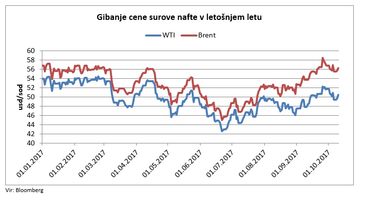Dogovor o omejitvi proizvodnje naftnega kartela OPEC je začel kazati želeni učinek, saj se je naftni trg letos, po daljšem obdobju, začel stabilizirati. Poleg omejevanja proizvodnje je na naftne trge letos pozitivno vplivala višja stopnja svetovne gospodarske aktivnosti, ki je nekoliko spodbudila agregatno povpraševanje. Doseženo ravnovesje pa že ogroža višja pričakovana proizvodnja v prihodnjem letu v proizvajalkah, ki niso podpisale sporazuma o začasni omejitvi rasti proizvodnje.
