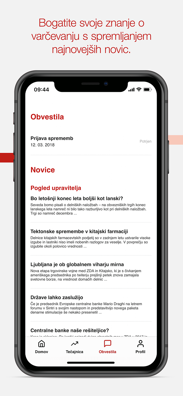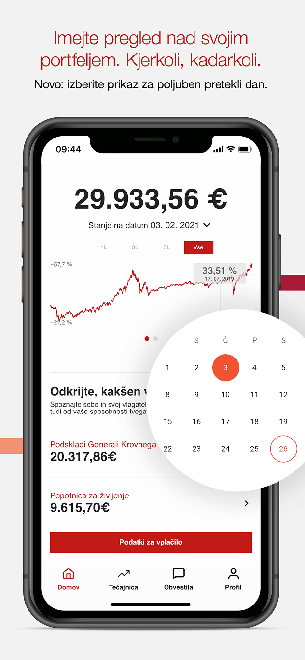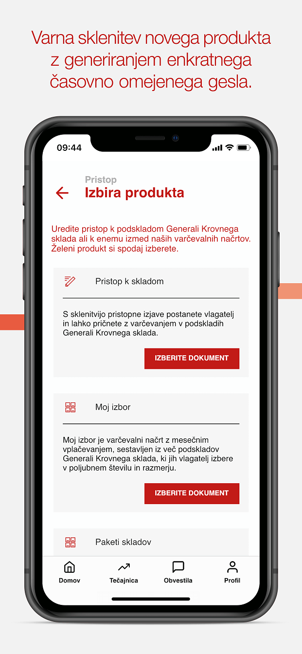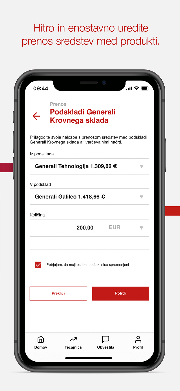 Brezplačna aplikacija Generali Investments vsem, tudi nevlagateljem, omogoča spremljanje tečajnice, gibanja podskladov Generali Krovnega sklada in donosnosti varčevalnih načrtov ter prebiranje najnovejših obvestil. Prek aplikacije lahko hitro in enostavne poiščete vam najbližjo poslovalnico. V najnovejši verziji smo vsem, ki še niste naši vlagatelji, omogočili pristop k podskladom Generali Krovnega sklada z video identifikacijo – brez obiska poslovalnice, varno in enostavno.