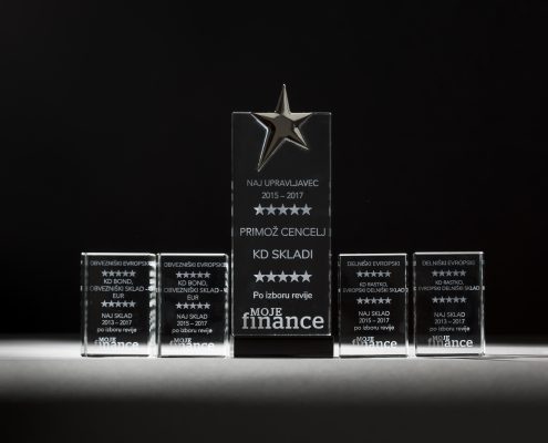 Nagrada za Naj upravljavca vzajemnih skladov, ki jo slovenska finančna revija podeljuje že osmo leto zapored, je tudi letos pripadala predstavniku KD Skladov Primožu Cenclju. Primož Cencelj, CFA, je trikratni prejemnik nagrade naj upravljavec premoženja v Sloveniji (za leto 2017, 2015 in 2013), znotraj KD Krovnega sklada upravlja podsklada KD MM in KD Bond ter KD Corporate Bonds v skupni vrednosti 54 milijonov evrov. Nagrade in ocene delovanja skladov v triletnem in petletnem obdobju z zvezdicami v našem prostoru pomenijo najvišjo nagrado na tem področju in izkazujejo kakovost upravljanja posameznega sklada v svoji kategoriji.