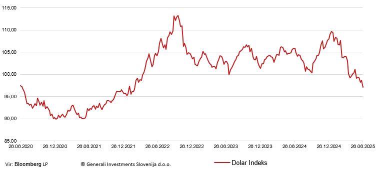 Vrednost dolarskega indeksa je v zadnjih mesecih padla na najnižjo raven zadnjih treh let. To pomeni, da je ameriški dolar vsesplošno šibkejši, kar je dobro za domače izvoznike, a nekoliko slabše za uvoznike. Ameriški dolar ni izgubil le proti evru, temveč je v zadnjih nekaj mesecih proti večini valut, ki jih vsebuje košarica dolarskega indeksa. Vzrok za abruptni premik tečajev je bila sprva naznanitev carin iz ameriške administracije, a vendarle je bila trgovinska vojna v zadnjih tednih postavljena na stranski tir.